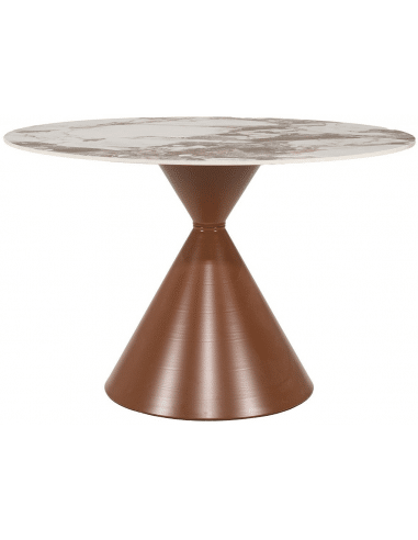 ROKA Rundt spisebord udført i et moderne design fremstillet af karamelbrun lakeret metal og brunhvid marmoriseret keramik. Spisebordet måler 77 cm i højden og 120 cm i diameter.